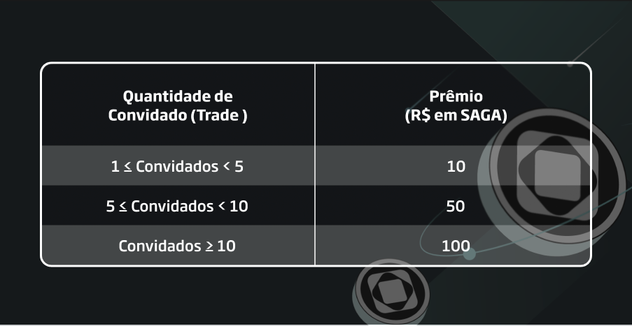 Você pode ganhar até R$ 100,00 em SAGA ao convidar os amigos e os indicar para a NovaDAX. Junte-se à festa da SAGA agora mesmo!
