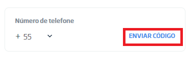 - Etapa final de envio no site – após informar o telefone, é necessário clicar no botão “ENVIAR” para receber o código.