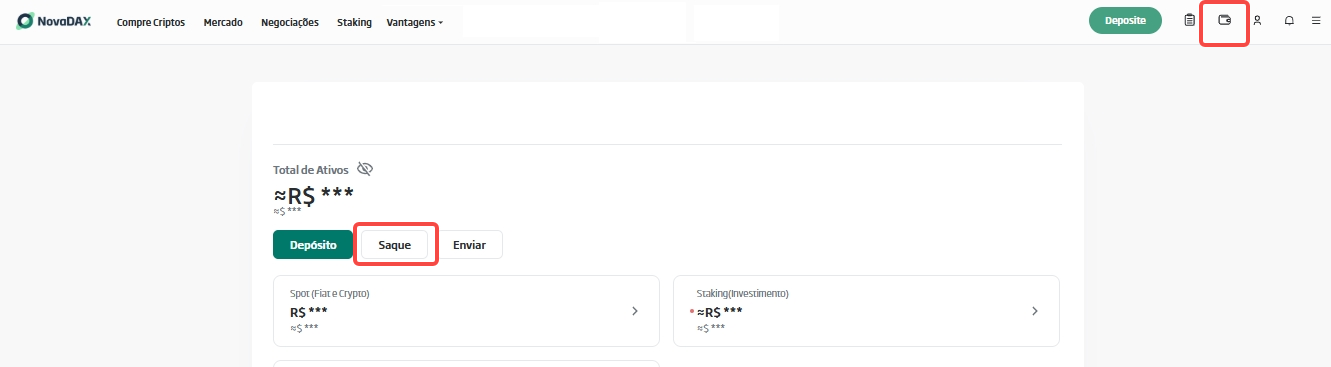 - No canto superior direito, clique em Carteira.