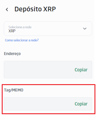 Algumas criptomoedas exigem o uso de MEMO/TAG, além do endereço de envio.